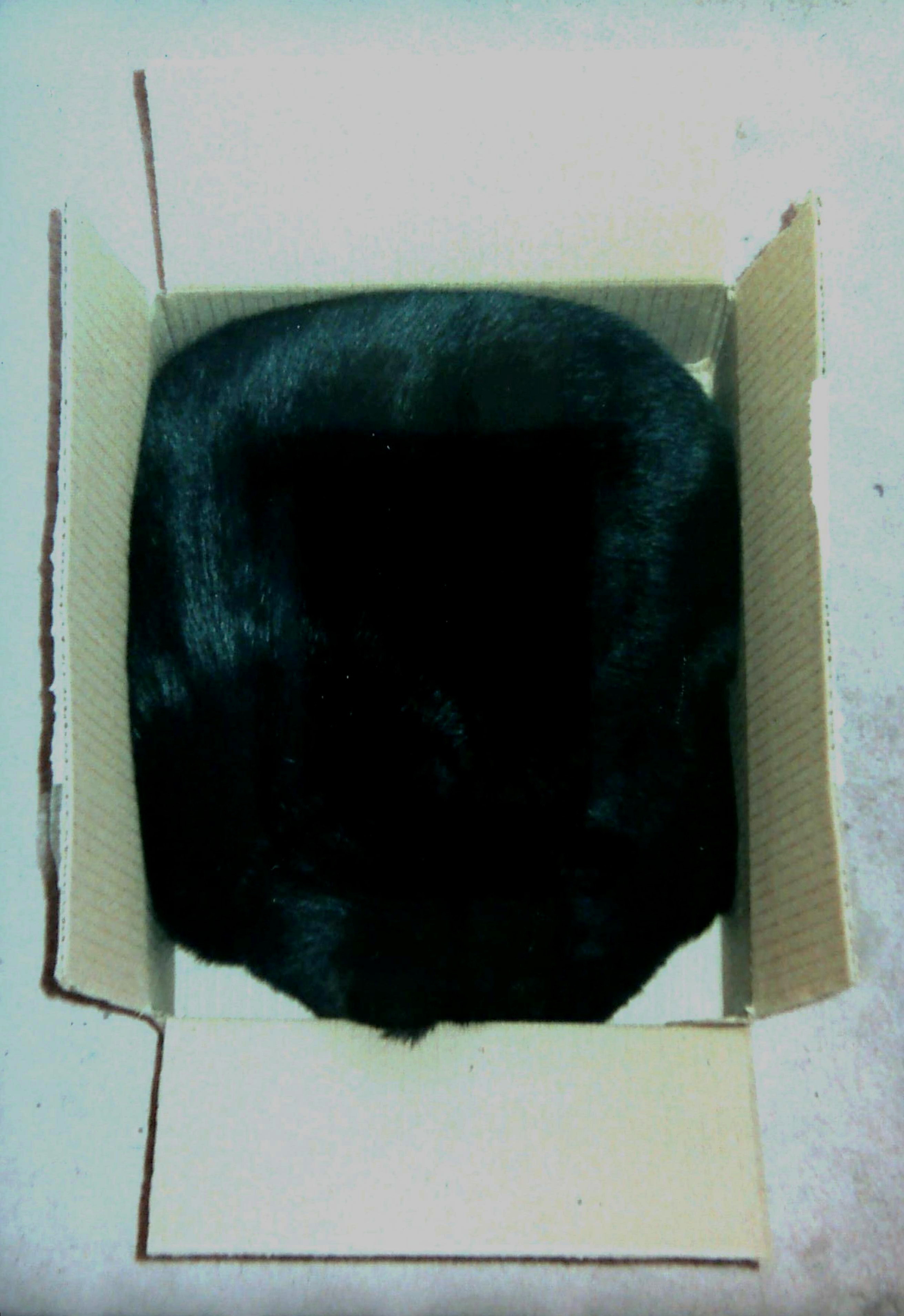 He was cremated. My friend Camilla incorporated his remains inside a clay sculpture, which watches from a shelf in the living room.